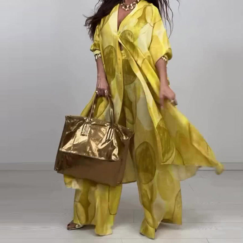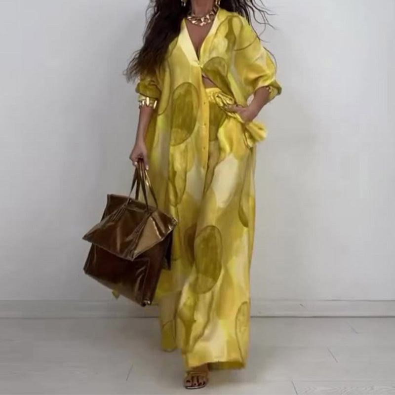 Mode Geprinte Lange Mouwen Shirt en Wijde Broeken 2-Delige Set
