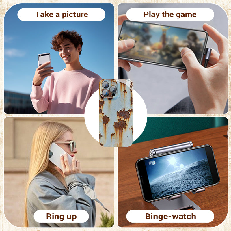 Dit hoesje heeft een authentieke roestige afwerking die verouderd metaal nabootst en je telefoon direct een vintage industriële charme geeft. Het artistieke oppervlak zorgt voor visuele diepte en blijft tegelijkertijd glad aanvoelen.